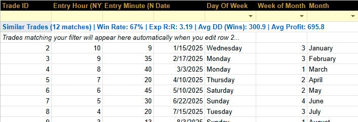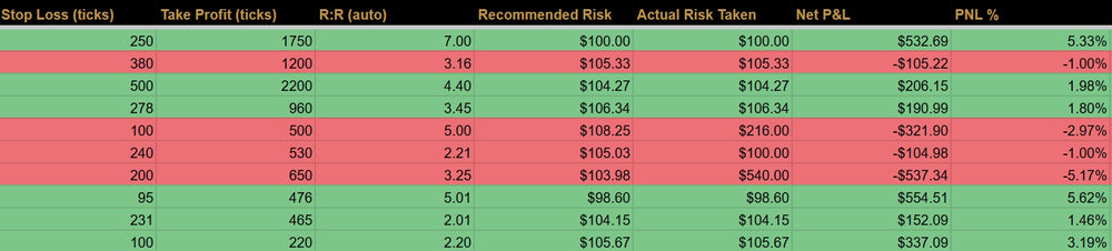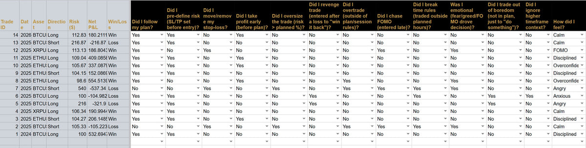 - Structured trade logging across 70+ columns