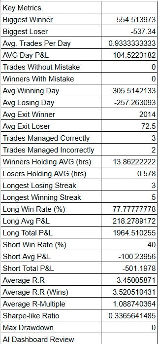 - Performance Review β Digs into win/loss stats, expectancy and streaks.
