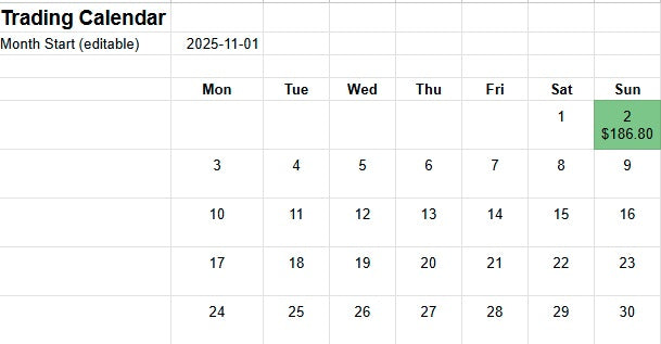 A calendar-style overview of your trading month that shows which days and sessions actually pay you.